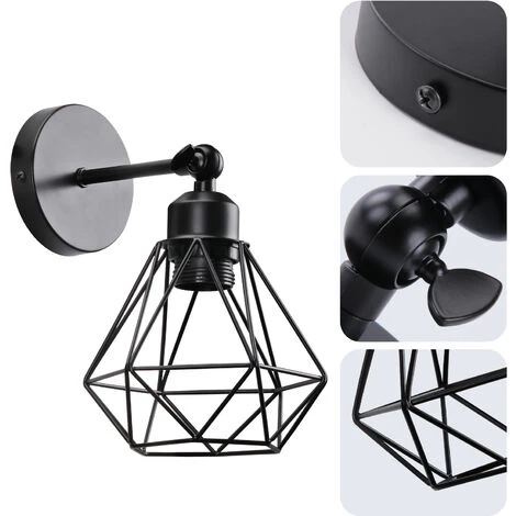 Design rétro applique murale industrielle, abat jour unique en treillis noir, pas facile à décolorer. La base est en fer, solide et durable.
