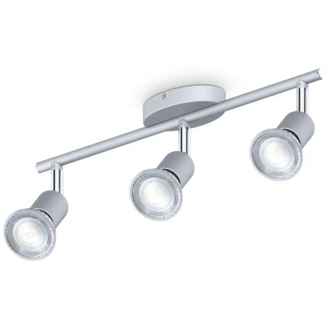 SERVICE CLIENT : choisir un luminaire B.K. Licht vous assure non seulement la qualité et la fiabilité allemande mais aussi un service client passionné et disponible pour répondre à toutes vos questions. La satisfaction de nos clients est notre motivation! Plafonnier LED 3 spots orientables Métal / finition titane 3 ampoules LED GU10 5W 400lm 4.000K Durée de vie 25 000 h, Ra>=80 Non dimmable IP20 385x100mm