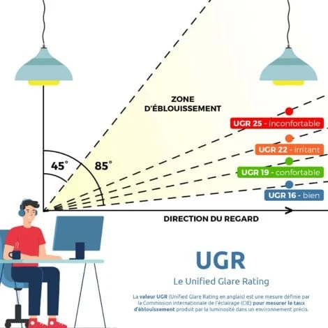 Equipée d’un diffuseur permettant de réduire l’effet d’éblouissement et d’inconfort.
