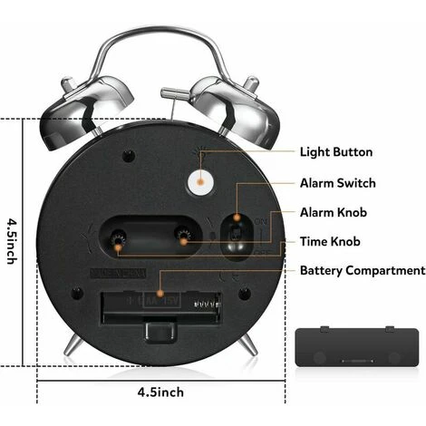 ②[Sonnerie extra forte] La conception à double cloche et un mini marteau fournissent une sonnerie extra forte. Parfait pour les gros dormeurs. Sans fonction snooze. bonne alarme de réveil en cas de difficulté à se réveiller.