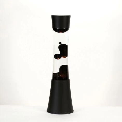 - Exceptionnelle Lampe à Lave Sandro noire au design rétro avec cire noire et liquide transparent H: 39 cm avec interrupteur E14 pour le salon