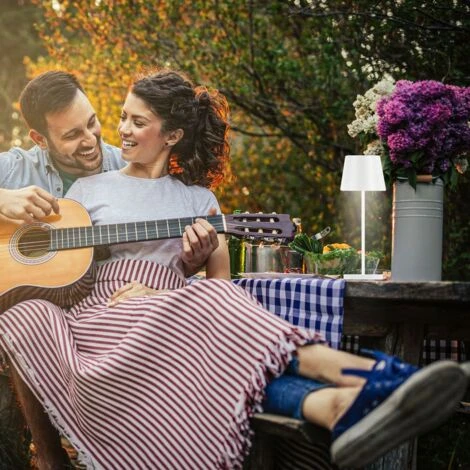 La lampe de table LED de 38 cm de haut est une lumière pratique et mobile grâce à sa batterie intégrée. Sans fil et facile à placer sur la table de jardin du balcon et de la terrasse.