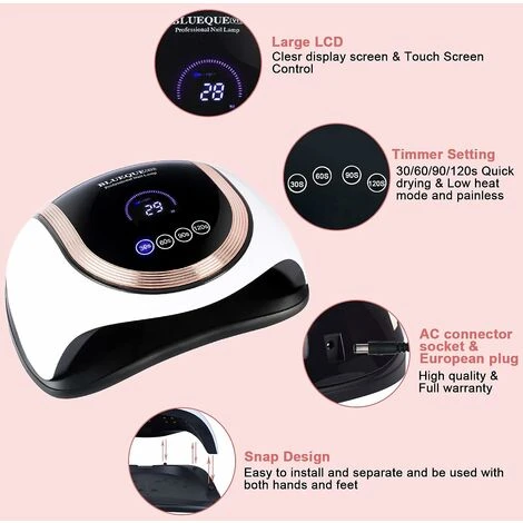 S’ADOPTE BIEN A TOUS LES VERNIS A ONGLES DE GELS ET LES RESINES: La lampe UV à ongles se presque applique à tous les genres de gel comme UV gel de traitement, gel étendu, gel LED de vernis à ongles, gel dur de construction, gel de sculpture, gem glue etc. Toutes les impressions et les finitions de gel polish y compris nail UV-glue, gel de construction, gel de sculpture à ongles, gem glue et gel LED à ongles.