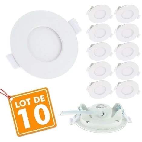 Lot de 10 Panels extra plat de 3W encastrable plafond