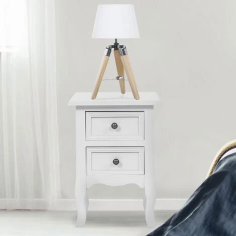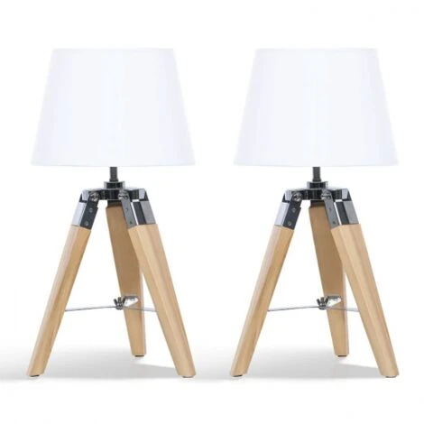 Apportez une double touche de décoration vintage tendance à votre intérieur avec notre lot de 2 lampes de chevet de forme trépied en bois clair et abat-jour blanc. Chaque lampe de chevet possède 3 pieds imitation bois et des montures en métal noir pour garantir une stabilité optimale.Dotée d’un abat-jour en tissu de forme conique et de couleur blanche, chaque lampe de chevet sur pied est moderne et chic.Posez la lampe où bon vous semble, idéalement sur une table de nuit dans votre chambre à coucher ou sur votre bureau ! Elle diffusera une lumière douce et chaleureuse parfaite pour bouquiner le soir ! Dimensions du lot de 2 lampes de chevet blanchesDimensions globales hors-tout : Longueur 25 cm x largeur 25 cm x Hauteur 43 cmDimensions de l’abat-jour : L. 18 x l.24 x H.15 cmType de douille (ampoules non fournies) : E27Puissance : 40 WClasse énergétique : A++ à GLampes vendues par lot de 2Découvrez nos autres coloris disponibles sur notre boutique en ligne :- Lot de 2 lampes de chevet trépied en bois foncé noires- Lot de 2 lampes de chevet trépied en bois foncé grises
