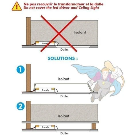 Les contours de ce modèle sont blanc, elle s’intégrera parfaitement dans un faux plafond 60x60cm