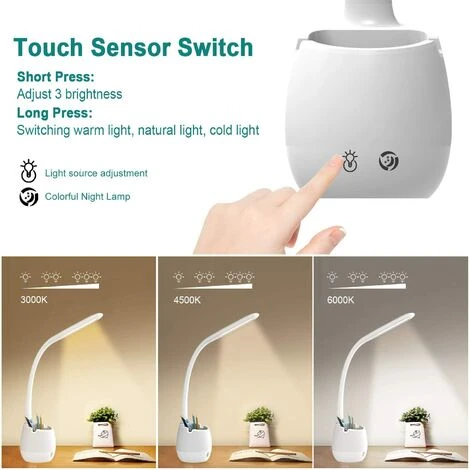 Grâce à la commande tactile simple, à 3 modes de couleur et à 3 niveaux de luminosité, la lampe de bureau LED offre un éclairage parfait.