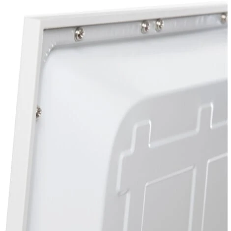 Finition blanche en aluminium. Le panneau a un degré de protection IP25 (valable pour la poussière et l’humidité à l’intérieur), en plus d’être suffisamment robuste pour les exigences mécaniques requises.