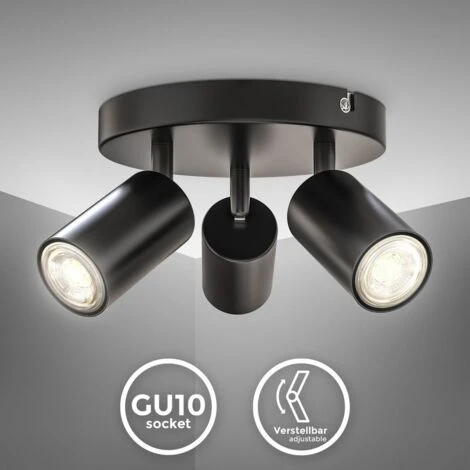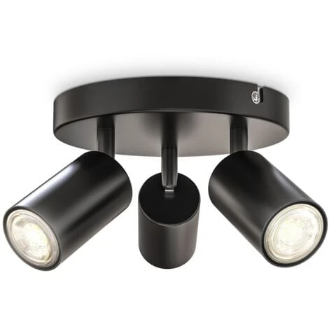 Plafonnier 3 spots en métal noir mat, idéal comme lampe de salon, de chambre ou d’entrée