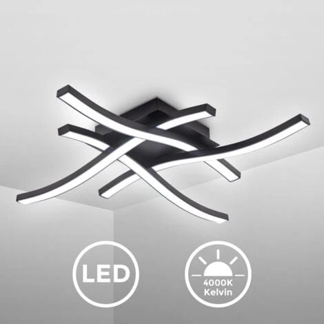 - Le plafonnier LED à 4 flammes en forme de vague incurvée a un aspect noir de qualité. Les 4 barres lumineuses LED fixes et verrouillées ont un aspect blanc acrylique.