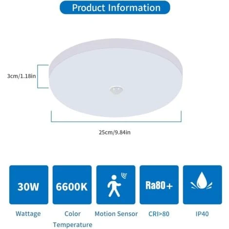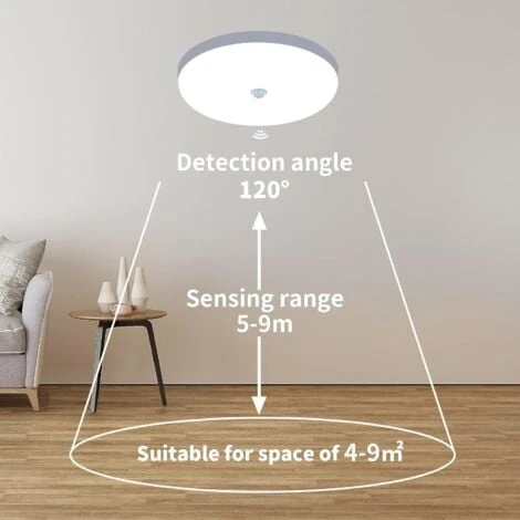 - Le plafonnier rond avec détecteur de mouvement a un design minimaliste moderne, parfait pour la maison, le magasin, l’hôtel, le bureau, le garage, le couloir, l’entrée, l’escalier, le vestiaire, le porche, le balcon, etc.