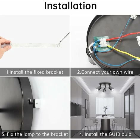 Conseils: le plafonnier 3 points convient à toutes les ampoules de type GU10 ; et également compatible avec les gradateurs ; (Ce rampe de spots n’inclut pas les ampoules et les gradateurs); Tension applicable : AC 220-240 V/50 Hz. Si vous rencontrez des problèmes, n’hésitez pas à nous contacter.