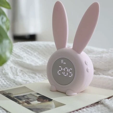 [Détails sur le lapin mignon] : affichage de l’heure de l’écran sonore, économiseur d’écran automatique Il peut être activé par la voix ou en secouant l’interrupteur. Lorsqu’un son est détecté, l’affichage s’allume. L’écran s’éteindra automatiquement après 15 secondes