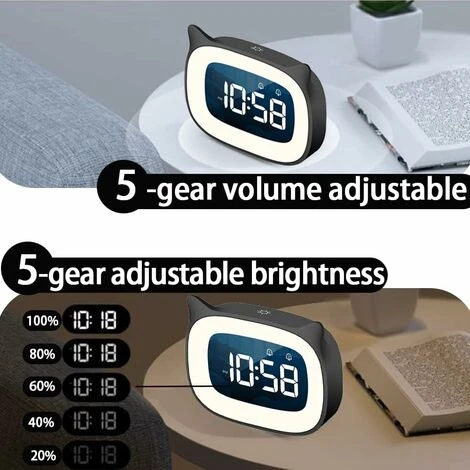 【Réveil LED intelligent】vous pouvez allumer ou éteindre l’anneau lumineux LED lorsque vous touchez la zone d’induction du haut. Appuyez sur plus loin peut être assombri en continu grâce à la veilleuse.