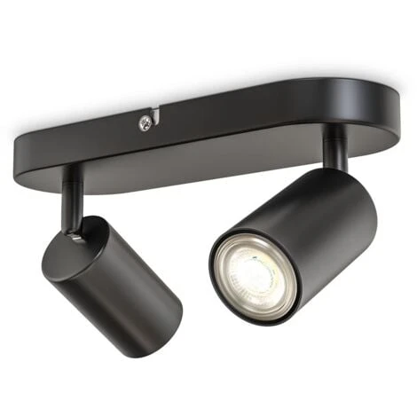 Plafonnier à 2 flammes en métal noir mat comme lampe de salon, de chambre ou d’entrée.