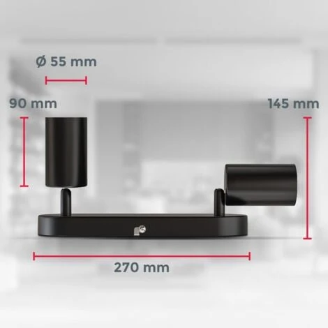 Les douilles GU10 sont conçues pour des LED de 5 watts maximum. Remplacement simple des ampoules possible.