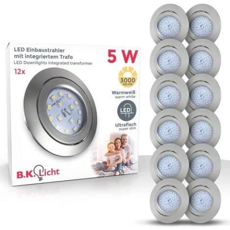 B.K.Licht lot de 12 spots LED encastrables ultra-plats, orientables, modules LED 5W intégrés, plafonnier design, éclairage encastré LED intérieur, blanc chaud 3000K, 230V, IP23