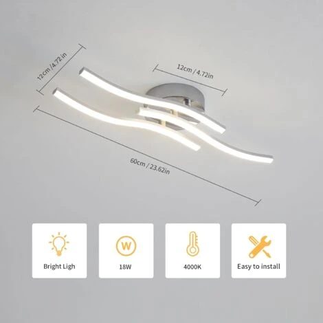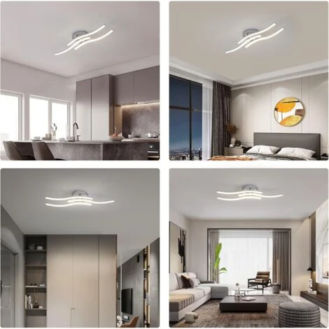 Design unique: le plafonnier LED, en métal couleur aluminium à effet mat, possède 3 bras en forme de vague. Barre lumineuse LED intégrée de haute qualité, avec couvercle en plastique blanc, style design simple, facile à installer et à utiliser!