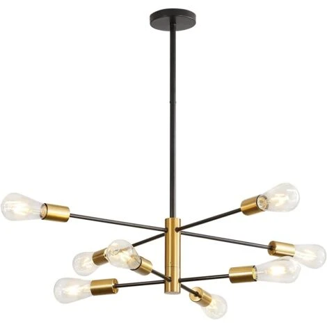 Comely Lustre Salon Moderne, Suspension Luminaire Industrielle, Noir-doré 8 Lumières E27 Base, Réglage de rotation 360° Lustre Plafonnier en Métal pour Salon Chambre Salle à Manger, (Sans ampoules)