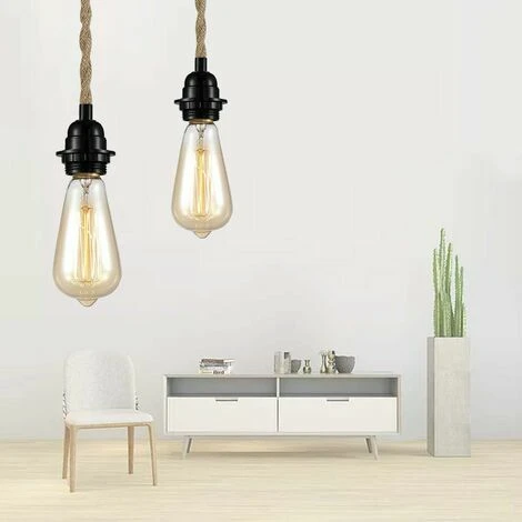Utilisation polyvalente: Avec 2 crochets de plafond et 2 crochets de cordon, ce câble de lampe est muni d’une corde de chanvre torsadée qui peut non seulement être utilisé comme une mini lampe de suspension, mais aussi comme une belle lampe de table,